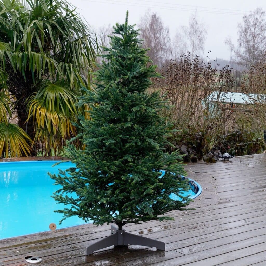 Die Nordmanntanne ist nochmal etwas hochwertiger verarbeitet. Die Nadeln sind ringsum sehr detailliert ausgearbeitet. Es gibt hier keine „Rückseite“. Außerdem ist das Material dicker. Damit fühlt es sich hochwertiger an – ob das nach 10 Jahren einen Unterschied macht – vermute nicht. Du musst einfach immer sorgsam mit dem Baum umgehen. Dann hält der dir in jeder Qualität „länger“.