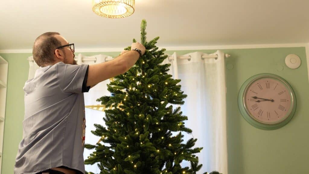 Wenn du keine Integrierte Lichterkette bestellt hast möchte ich dir hier meinen Tipp geben, wie dein Baum extrem schön von innen nach außen ausgeleuchtet werden kann.