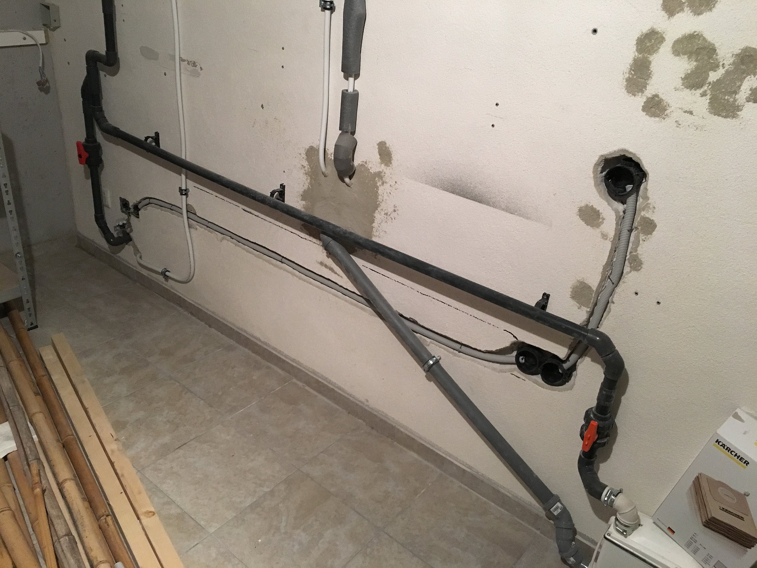 Alles wird hinter der Wand per Hebeanlage in unser Abwasser gepumpt