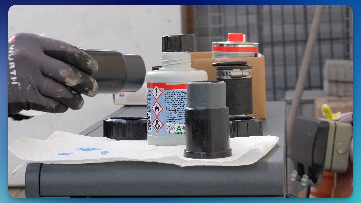 Beim Kleben von Pool-PVC-Verbindungen musst du die Teile axial ineinander schieben. NICHT drehen!