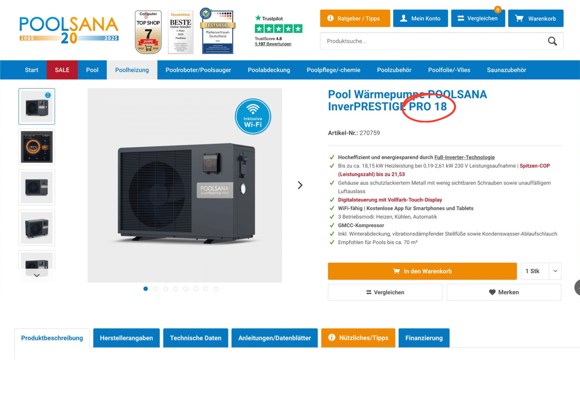 | Heizleistung (max) ➡️ | bis 18,02 kW | bis 18,15 kW | PRO minimal höher (+0,13 kW) |