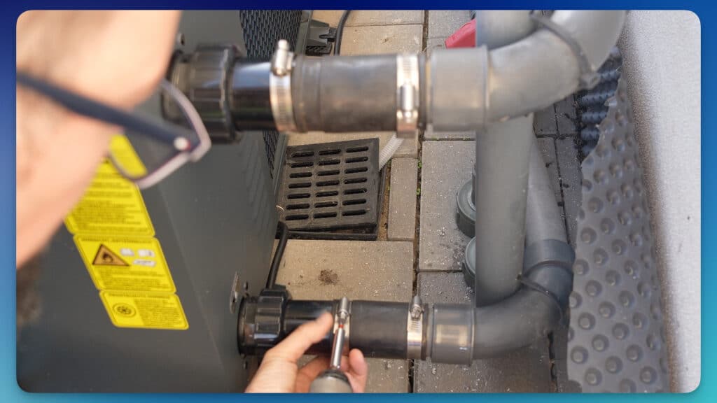 Die Wärmepumpe wird per Bypass an die Druckseite deiner Filteranlage angeschlossen – also in die Leitung, die zu den Einlaufdüsen führt.