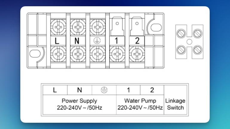- Schließen Sie das Stromkabel entsprechend dem angegebenen Schaltbild am Anschlussblock an.