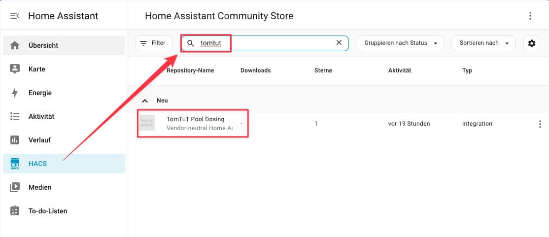 Gib in der Suche bei „HACS“ einfach „tomtut“ ein. Unten sollte meine Integration auftauchen.