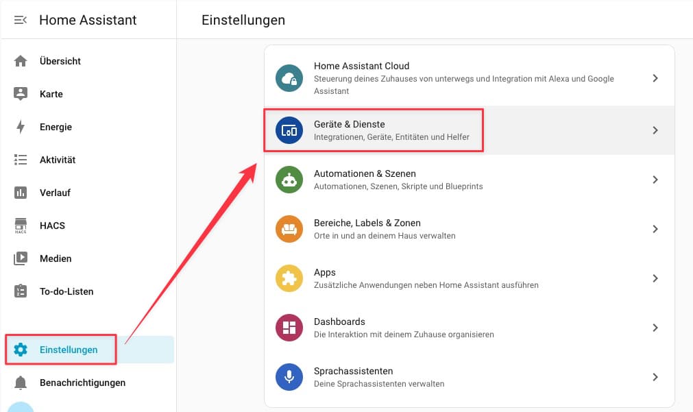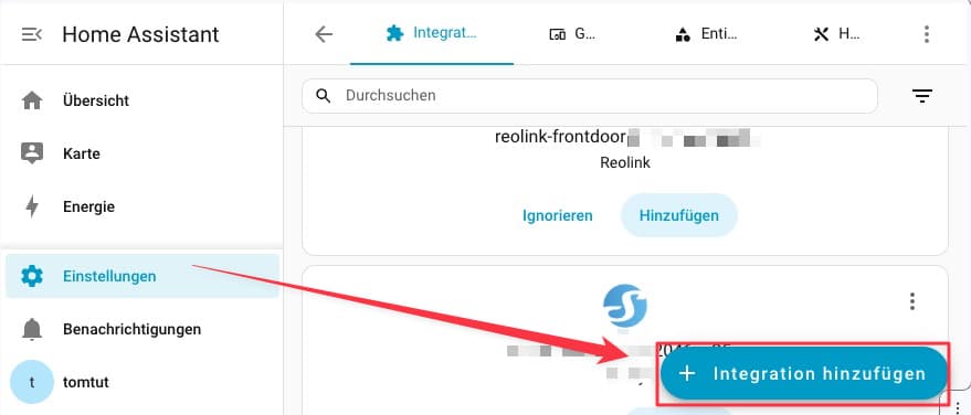 „Einstellungen“ – „Geräte & Dienste“ – „Integration hinzufügen„