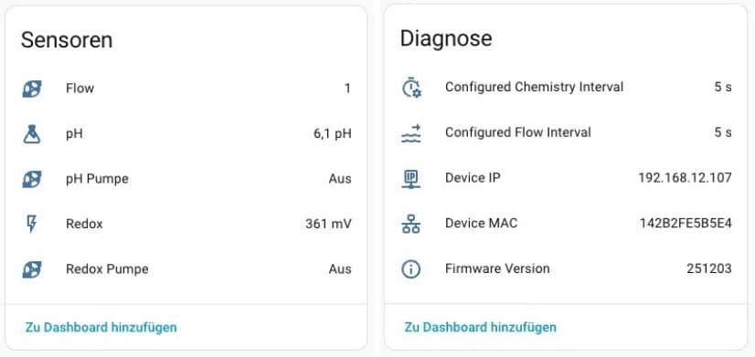 Für die Sensoren der pH- und Redox-Pumpe kannst du hier das Intervall der Aktualisierung festlegen. 60 Sekunden sind nur mal eine Idee von mir.