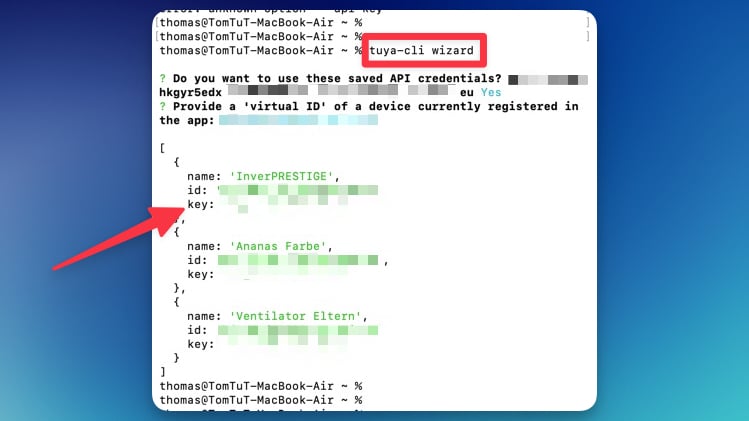 Zuerst brauchst du ein kleines Hilfsprogramm, das den LocalKey aus der Tuya-Cloud abrufen kann.