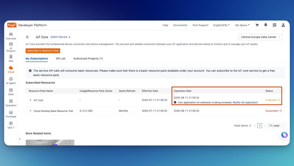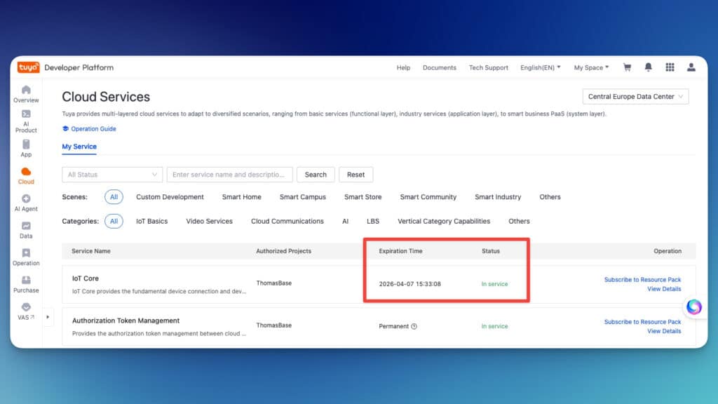 TUYA – SmartLife – Entwicklerkonto verlängern